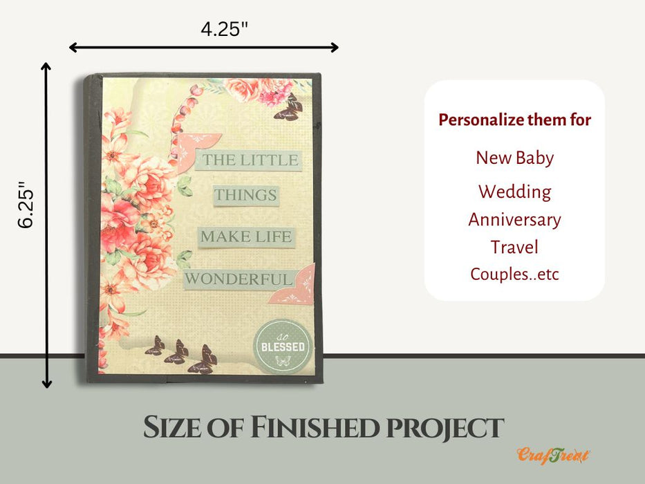 Looking to dive into scrapbooking without the stress of cutting, scoring, and assembling? Our Junk Journal Scrapbooking Kit makes 1 album, making the process easy and fun! Save time and focus on the creative side, personalizing your scrapbook albums with any theme you love—whether it’s for a couple, baby, wedding, birthday, anniversary or vacation scrapbook.