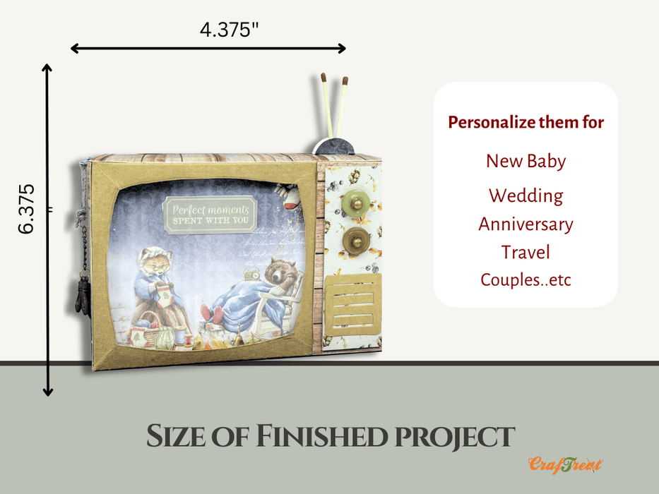 CrafTreat Scrapbook Blank Precut Album Base - TV Pop up Mini Album - Kraft